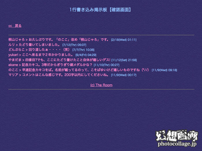 そして公開から半年が経過した2004年11月12日に、とうとうヒロさんが一番乗りで到達されました。またヒロさんに続いて、1年後の2005年11月にのここさん、akaneさん、やまだまさん、翌年09月にyukariさん、翌々年07月にどんぶらこさん、ルリさんが到達されました。最終ページには到達者のみが書き込める掲示板がありますので、ぜひあなたも挑戦してみませんか?