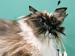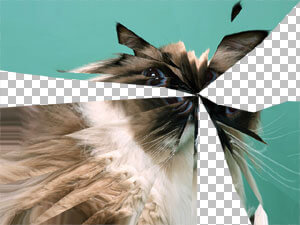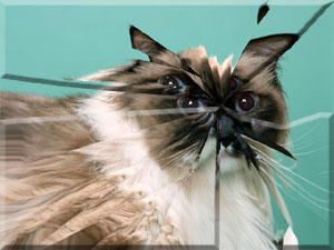 なんと! ネコのレイヤーが割れたガラスの形に変形しました!