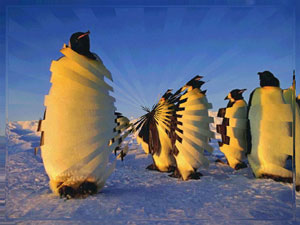 ペンギンの写真を置き換えフィルタで変形してみました。素材集にある画像をグレースケールにして使うのもいいですね。いろいろ遊んでみましょう!
