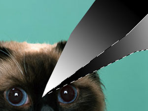ネコの画像に戻ります。左の画像では、先ほど作った割れたガラスのレイヤーは分かりやすいように削除してあります。