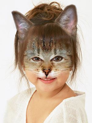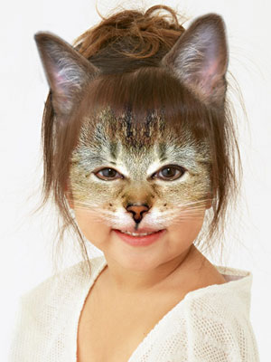 結合した猫のレイヤーのレイヤーマスクを作り、少女の顔の輪郭に合わせて、いらない部分を消していきます。