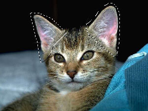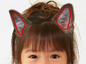 猫の画像の耳を投げ縄ツールで囲んで、女の子の画像にコピー&ペーストします。