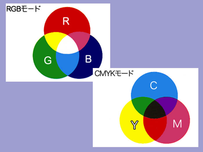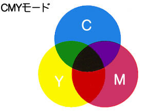 【CMYKモード】C(シアン、藍色)、M(マゼンダ、紅色)Y(イエロー、黄色)、K(ブラック、黒色)で色を表現するモードです。印刷の場合、この4色のインクを使って色を作ることになります。RGBで制作した画像も印刷する時にはCMYKに変更します。